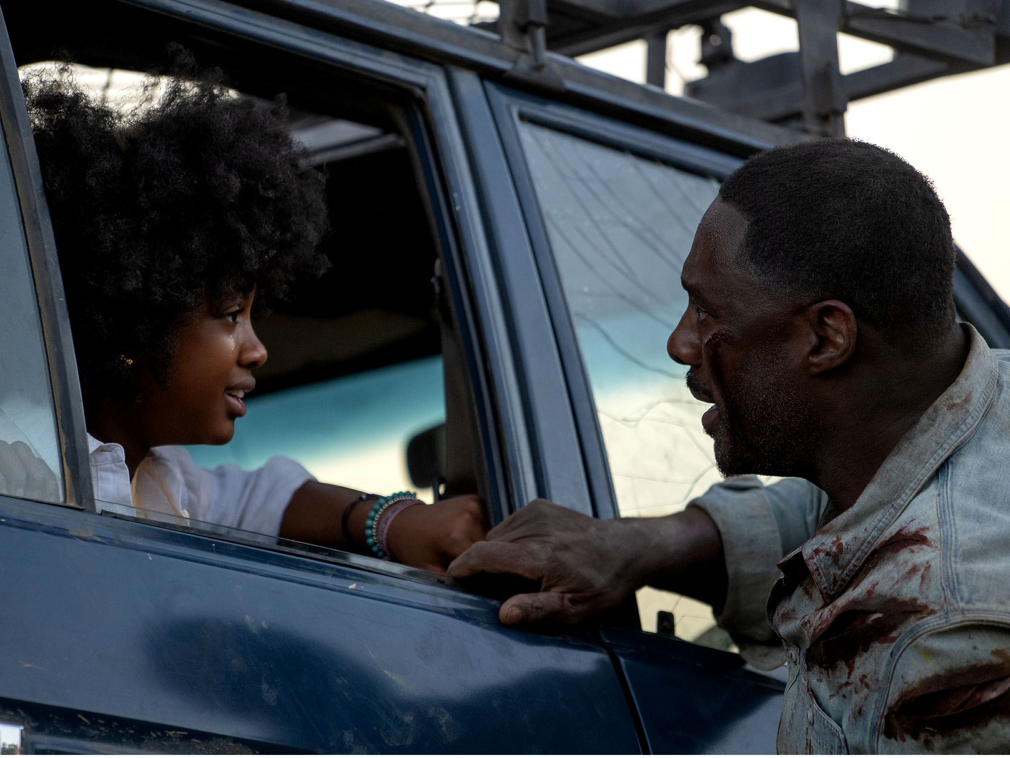 Elba is Nate Samuels, a doctor whose obsession with work made him a distant father to his daughters, Meredith (Iyana Halley) and Norah (Leah Sava Jeffries). When his wife dies, he tries to reconnect with his girls and process their grief by visiting the South African village where she was born. Nate’s ranger friend Martin (Sharlto Copley) takes the family on a tour of the nearby wildlife preserve, unaware that the area is being stalked by a lion who has taken to killing humans for sport.