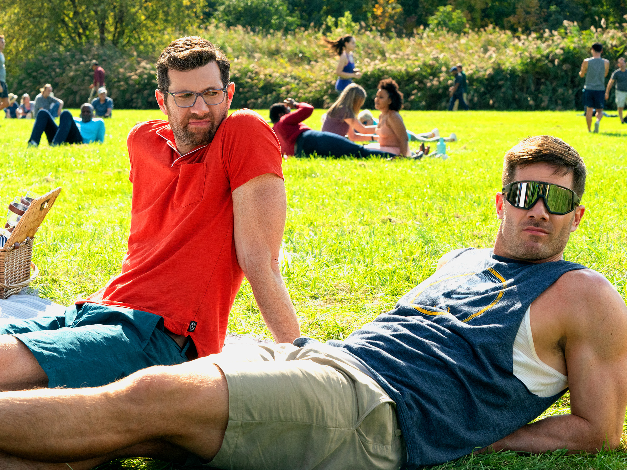 A thoroughly modern premise sees Eichner play a character who seems at least a little based on himself – Bobby Leiber is a podcaster and newly-hired curator for the LGBTQ+ History Museum, who claims to be happy with his singledom and rolls his eyes at his friends who are coupled up or enjoying playing the field. Bobby meets “hot but boring” Aaron (Luke Macfarlane) at a nightclub, and while they flirt, he assumes Aaron isn’t interested in him, and from there Bros falls into a familiar will-they-won’t‑they rhythm as Bobby navigates difficulties in his new job alongside the differences between him and Aaron which apparently make them ill-suited for one another.
