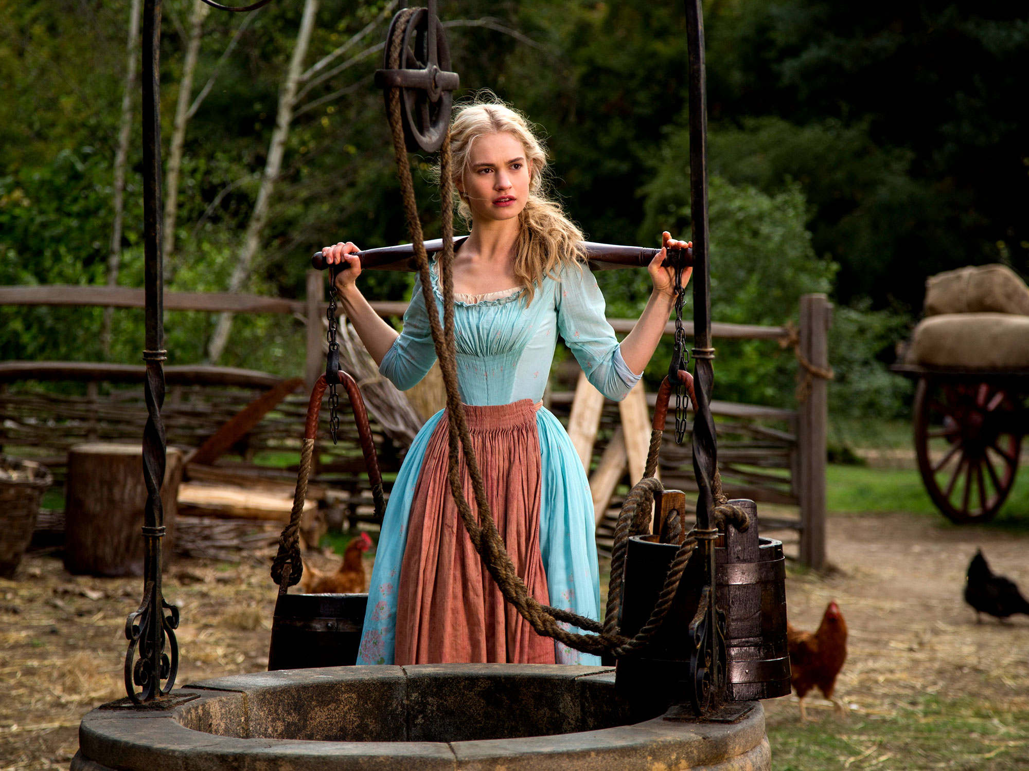 Among the Disney canon, the film harks right back to the early animated features more than it does to any recent live action offering, and it feels precision built for enjoyment by a young female audience, which in itself is laudable. It’s actually as if Branagh and screenwriter Chris Weitz have opted to remake Disney’s 1950 version, along with talking mice, a glittering sky-blue ball gown and the casting of Lily James as the title character, an eerie dead ringer for the hand-drawn rendering voiced by Ilene Woods. TV’s Downton Abbey is also a clear touchstone, due in part to the early/mid-century décor of the main house, but also the fact that there are significant casting overlaps and a stolid sense of aristo-inspired English reserve.