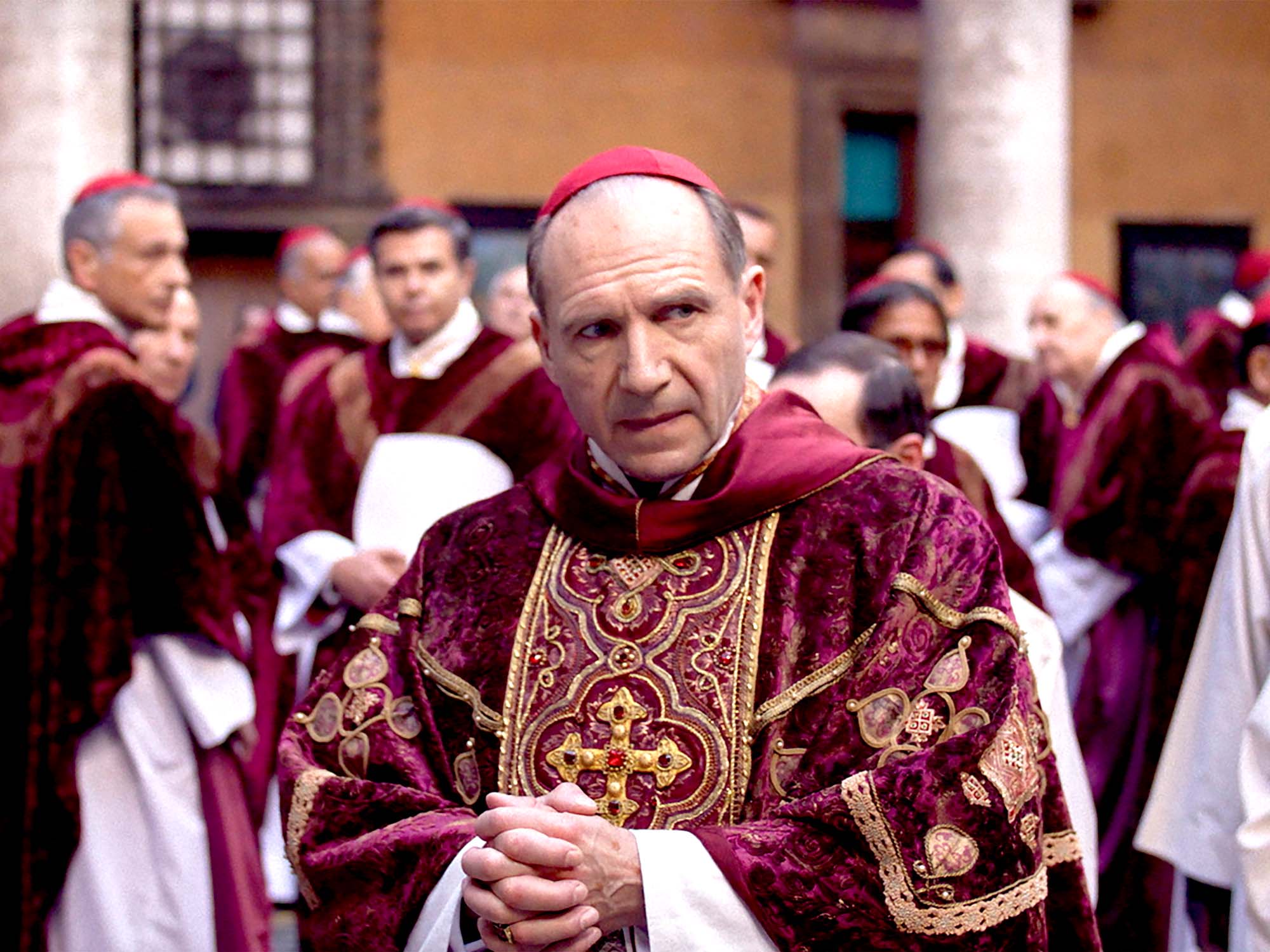 At the centre of the furore is Ralph Fiennes’ Cardinal Lawrence, a canny backroom operator and papal diplomat whose reluctance to coordinate the conclave stems from recent doubts he’s been having about his faith. These doubts are compounded further when he starts to receive votes to be the guy who wears the big hat. He is known to be one of the more liberal cardinals, and so in his position, he feels it his duty to make sure all the assembled spiritual leaders have all the facts, especially when it comes to the more conservative candidates.
