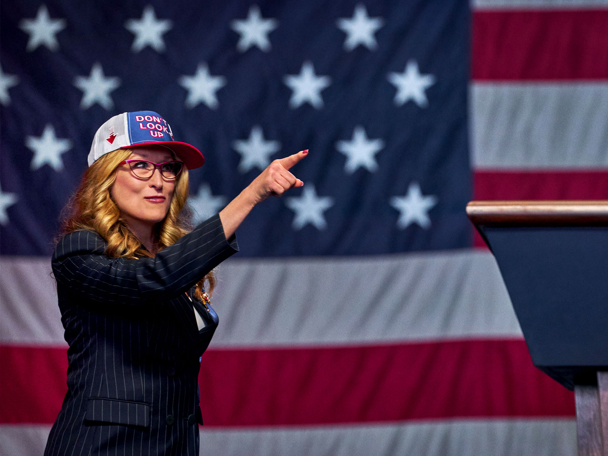 Streep’s president is clearly modelled after Trump, which is funny up to a point, but also feels like too convenient a get-out, as if all we can do is spiral into darkness while our elected representatives continually fuck us over. It’s not like things have been markedly better since Trump retreated into the shadows; the maddening inaction of elected officials is now secluded behind closed doors, rather than played out on the POTUS Twitter account.