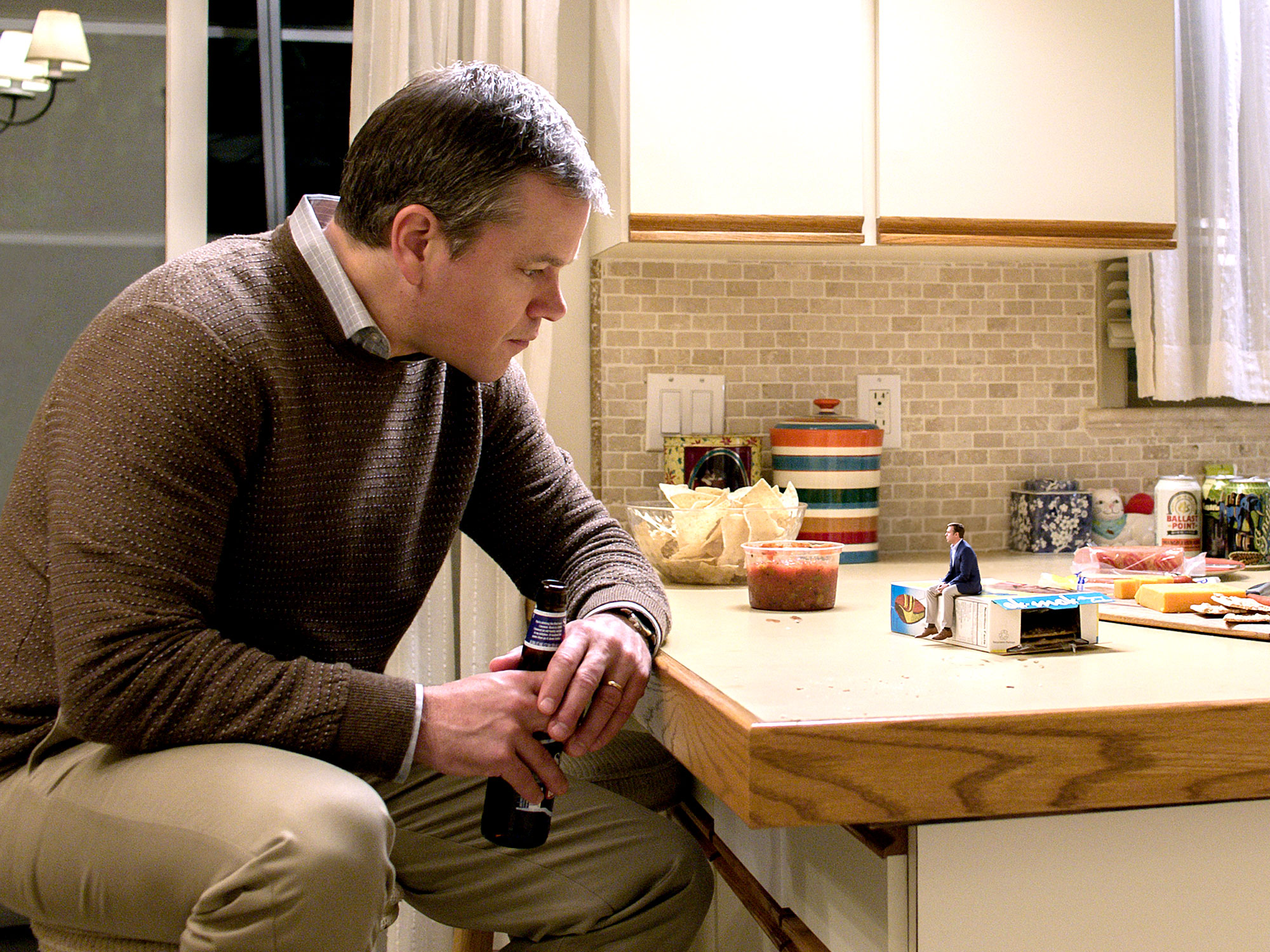 A decade or so later, in Payne and regular co-writer Jim Taylor’s extended timeline, the process has become a commercial reality for an increasing number of Americans who’ve decided downsizing is the way to go. Saving the planet isn’t necessarily their prime consideration however, since for hard working, financially over-extended middle income types like Matt Damon and his wife Kristen Wiig, the attraction is clear. When you’re five inches tall, your dollar buys you so much more.