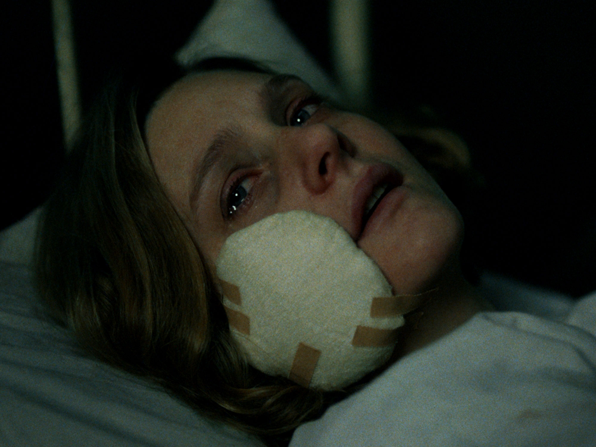 Indeed, it is the eponymous Aalbert – nicknamed “Earwig” in the novella – who eats away at the runtime. Hilton’s performance shifts between restrained caretaker-cum-widower and overwrought instigator with apparent ease. Aalbert’s anxieties are underscored by Ken Yasumoto and Bruno Schweisguth’s chilling sound design, made up of dripping saliva, tinnitic ringing and the violent hum of wine glass rims.