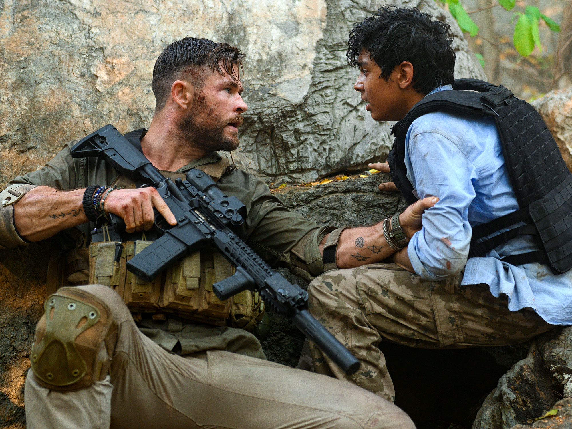 Hemsworth coasts as the omnipotent rippling spunk who is so good at not getting killed that he drains the film of any threat or drama (see also John Wick). The strange contrast of a lengthy, whispered heart-to-heart between Tyler and his mark, Ovi (Rudhraksh Jaiswal), is a naked attempt to cover all the character stuff in one bulk session, apparently sating the slathering audience’s appetite for scads of tedious, bullet-based carnage.