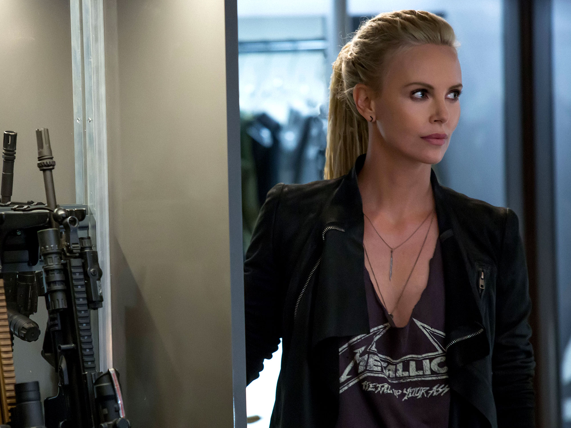Seeing as fate and family are the central themes here, it’s both fitting and a little ironic that Diesel is removed from the picture early on. After a NOStalgia-charged street race in Havana, Cuba, Dominic “Dom” Toretto is confronted by Charlize Theron’s mysterious cyber terrorist, Cipher (think the ice-cold badassery of Imperator Furiosa from Mad Max: Fury Road mixed with the wild-eyed flightiness of Arrested Development’s resident MRF, Rita). For reasons unknown to Dom’s crew, he’s suddenly forced to go rogue, putting Hobbs firmly in the narrative driving seat.