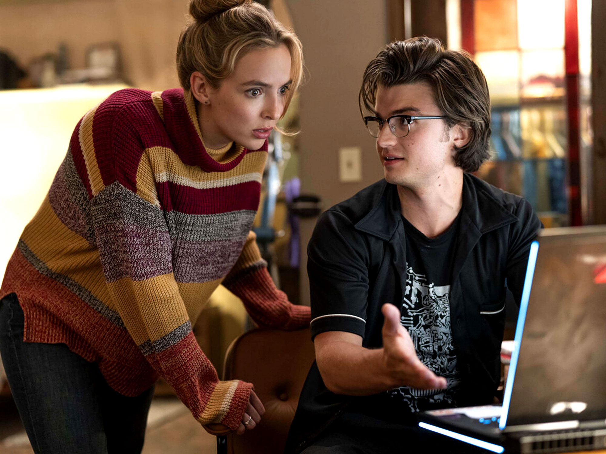 Unfortunately, the film gets bogged down in Guy’s romance with Molotov Girl (Jodie Comer), taking us out of the game and into the real world of video game designers and their corporate overlords. In this world, Molotov Girl is Millie, a disgruntled programmer who believes that she and former partner Keys (Joe Keery) had some of their code ripped off by the game Free City, where Guy resides.