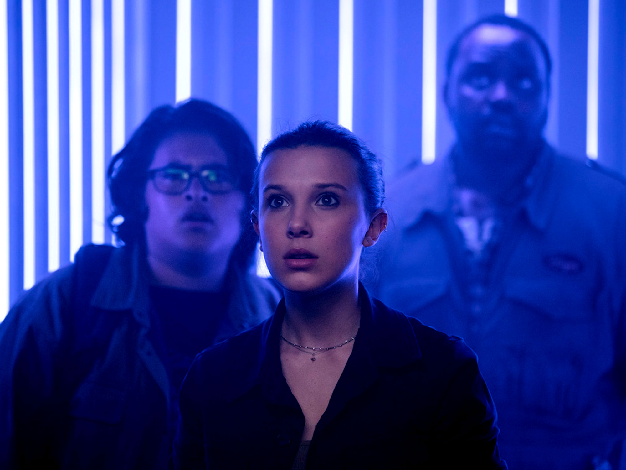 The numerous, dragging interludes spent with the mere mortals, however, succeed only in elongating the run time and grinding the action to a halt. A new round of scientists and military types (Rebecca Hall, Alexander Skarsgård, Eiza González) scramble about trying not to get crushed underfoot, though that’s not nearly as snooze-worthy as the thoroughly unneeded subplot involving a couple of exhausting smart-aleck kids (Julian Dennison and a returning Millie Bobby Brown) and a conspiracy-theorist podcaster (Brian Tyree Henry, doing what he can).