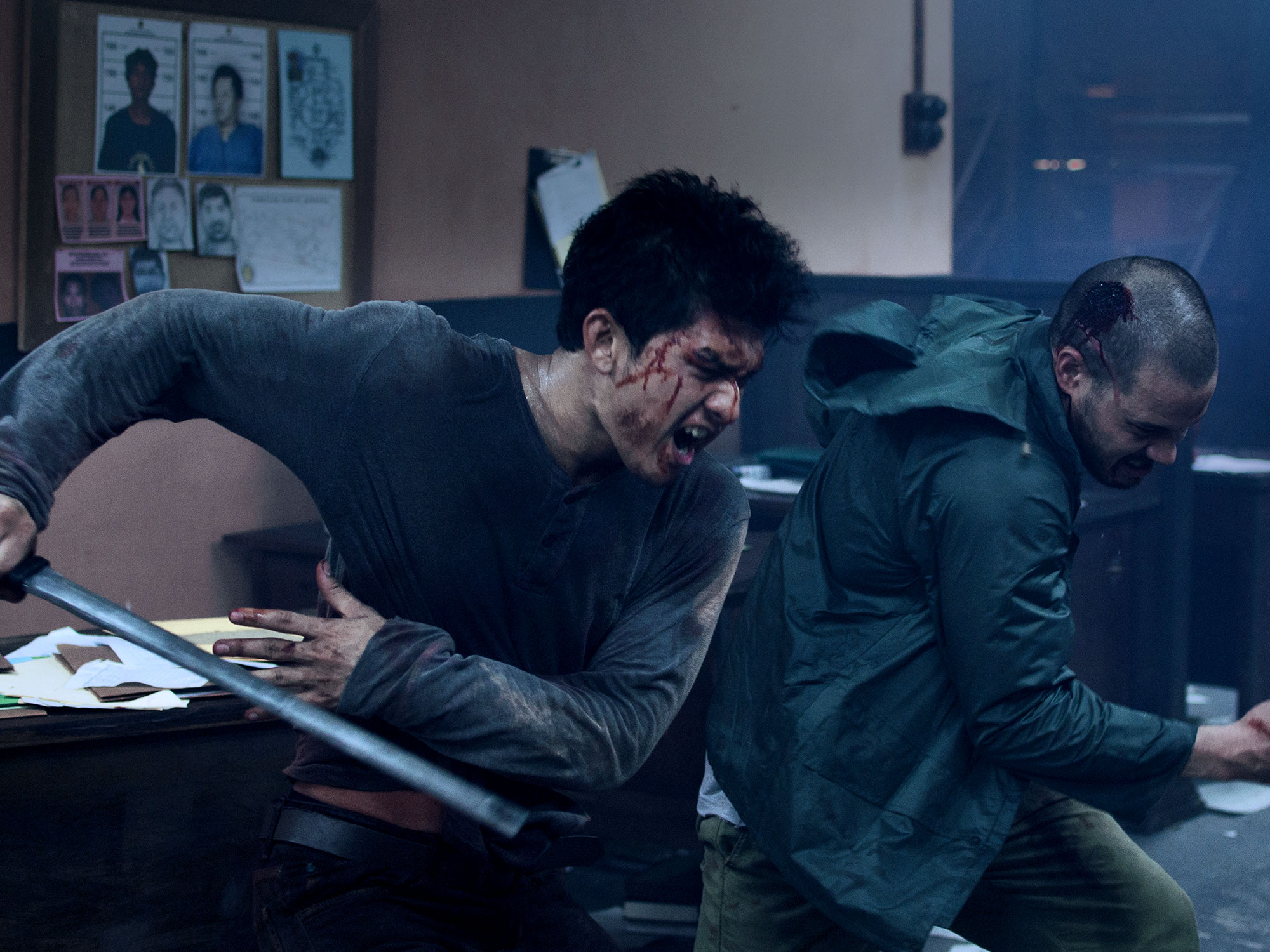 Master killer Iko Uwais stars as damaged dullard Ishmael, a confused young man who washes up on a beach with a mysterious surgery scar snaking across his cranium. He then slips into a pair of power blue Vans and loose-fitting camo green singlet, and before he’s had a chance to gather his marbles, a procession of gurning, tattoo-covered minions/punching bags are having at him with guns, knives and telescopic batons.