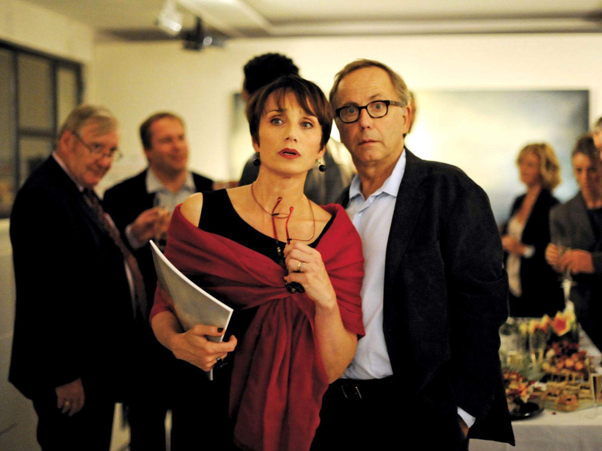 Halfway through François Ozon’s flippant metafarce In the House, Kristin Scott Thomas’ Jeanne, a sultry, silver-tongued art dealer and wife to ratty, motormouthed literature prof Germain (the great Fabrice Luchini), is seen wearing Annie Hall’s infamous beatnik garb: puffy white shirt, baggy pants and beat-up waistcoat combo.
