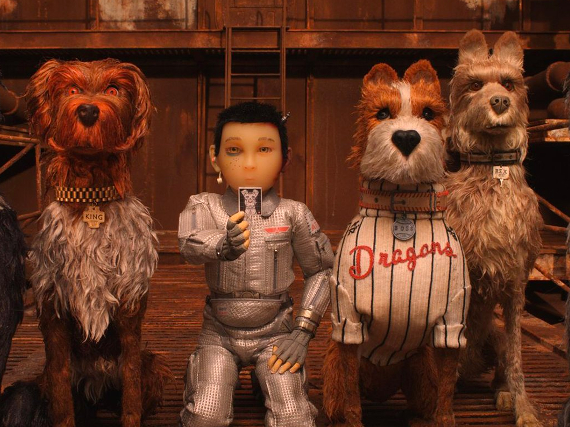 The mythology of Isle of Dogs informs of the cat-loving (evil) Kobayashi dynasty and a mysterious outbreak of ‘snout fever’ which threatens the population (both canine and human) of retro-futurist urban prefecture, Megasaki. The solution presented by no-nonsense Mayor Kobayashi is to banish every dog to a floating, off-shore garbage dump named Trash Island. This reactionary decree does not go down well with his young ward, Atari, who promptly sets off to retrieve his pet dog Spots from exile – and in doing so, happens upon a rag-tag pack of self-styled alpha dogs.