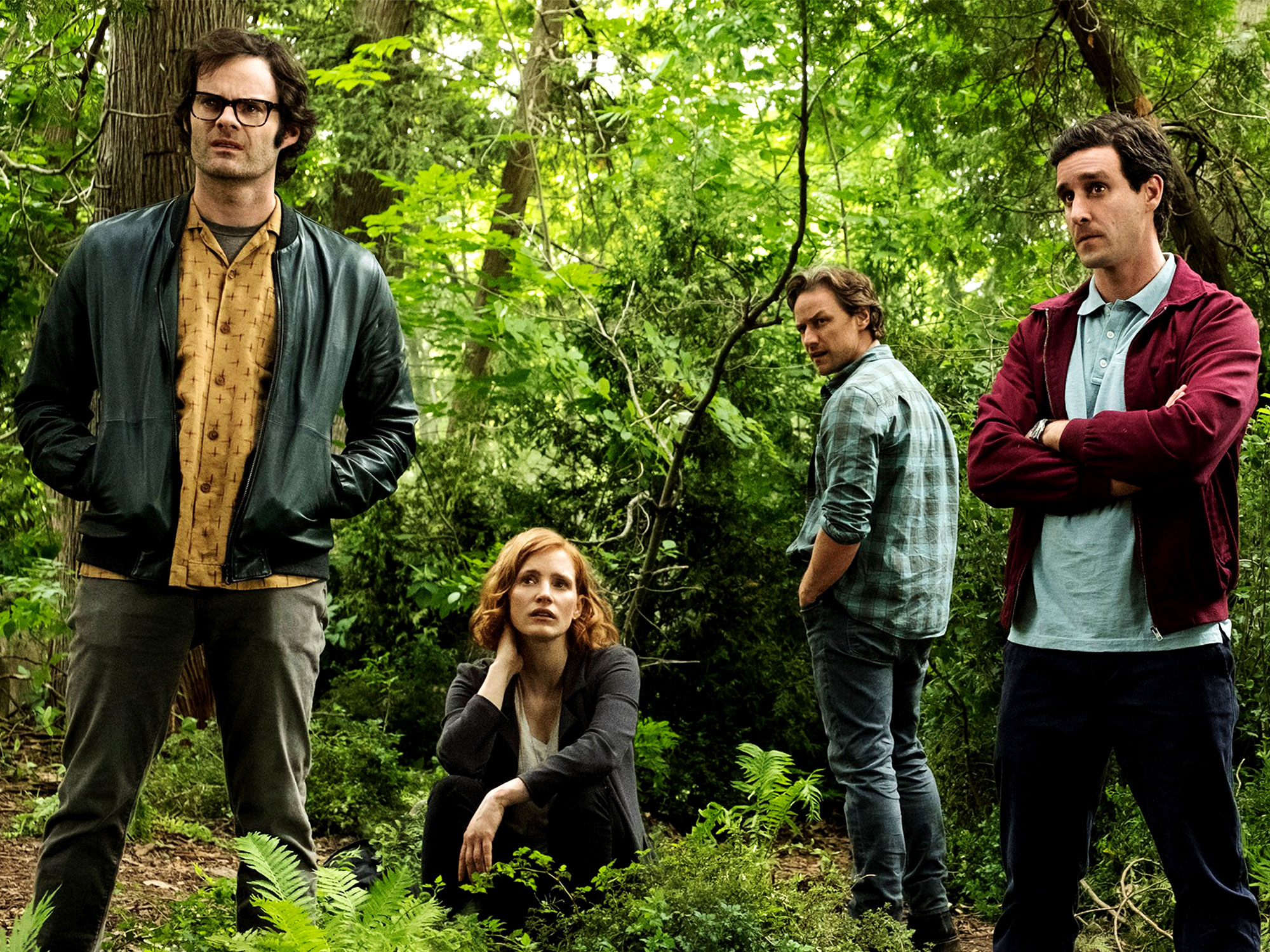 Now, only two (but also 27) years later, the Losers are all grown-up, a diaspora of damaged adults still bearing the scars – both physical and psychological – of horrific childhood experience whose details they struggle even to remember. When It returns, once again going on a feeding frenzy through Derry’s weak and fearful, Mike (Isaiah Mustafa), who alone stayed behind in his childhood home, summons adult Bill (James McAvoy), Beverly (Jessica Chastain), Ben (Jay Ryan), Richie (Bill Hader), Eddie (James Ransone) and Stanley (Andy Bean) to face It once again.