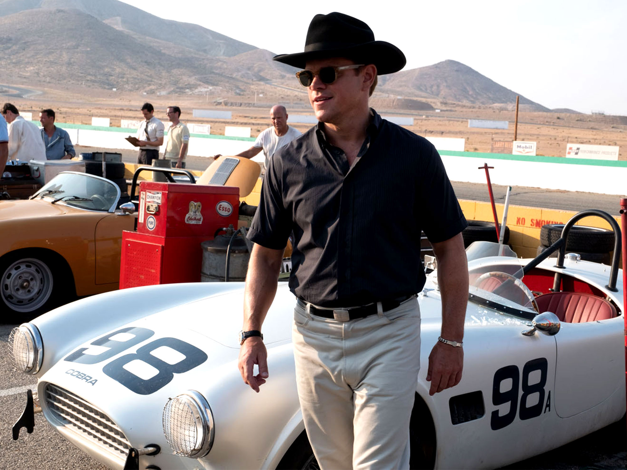 Where the former had perfected the bland, practical, affordable family saloon, the latter sunk every lira he made into producing sleek, speedy, erotically-desired racing cars. Then the demographics shifted: teen hotrods suddenly had money to blow, and wanted fast, sexy, sporty vehicles, not a trundling box on wheels. And so Ford II (played with scowling, comic book grandeur by Tracey Letts) decides to found a racing division, bringing Miles and ex-driver-turned-entrepreneur Carroll Shelby (Matt Damon) under his considerable wing to build a dream machine that’ll have Ferrari weeping into his limoncello.