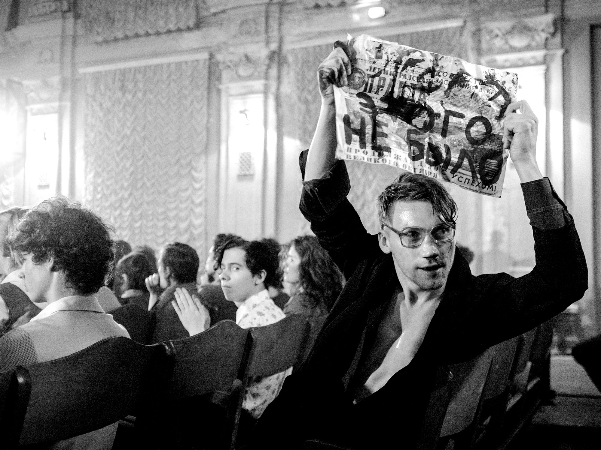 Despite its featherlight tone, the film pulsates with an infectious energy provided by a series of sequences where characters break out into songs such as ‘Psycho Killer’ by “Heads That Talk” and Iggy Pop’s ‘The Passenger’. Serebrennikov visualises music as an ephemeral escape before a narrator known as Skeptic (Aleksandr Kuznetsov) reminds the viewer that “this did not happen.”