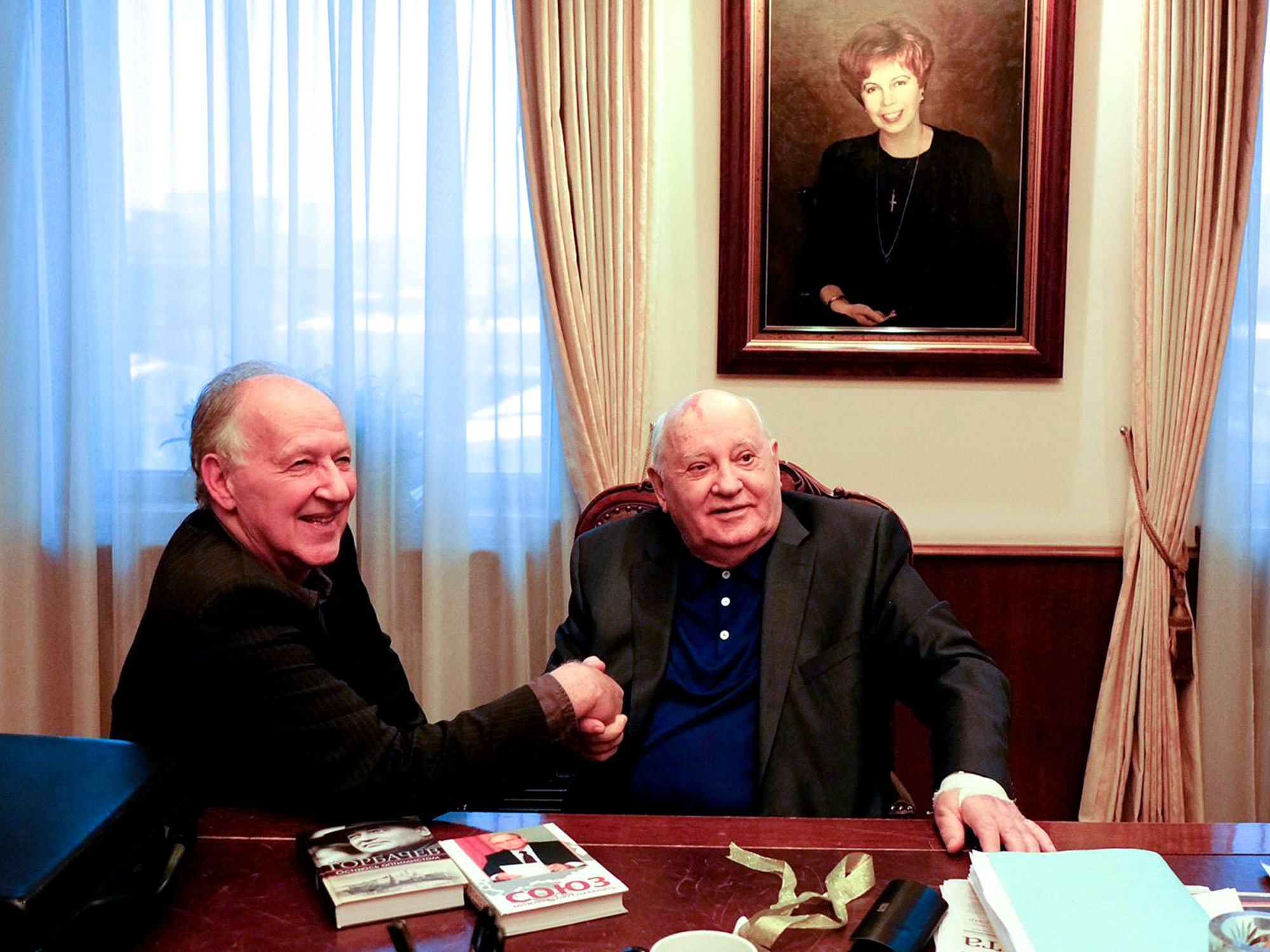 For Meeting Gorbachev, Herzog shares his directing credit with Andre Singer who has served as producer or executive producer for Herzog 14 times since 1992. Yet Herzog has written and narrated the film himself and is shown on screen as Gorbachev’s interviewer. The bulk of the film comprises choice cuts from three sit-down sessions between the two, with Herzog also providing spoken context with a potted history of Gorbachev’s upbringing in rural Stavropol and subsequent rise within the Communist Party over archive stills and news footage.