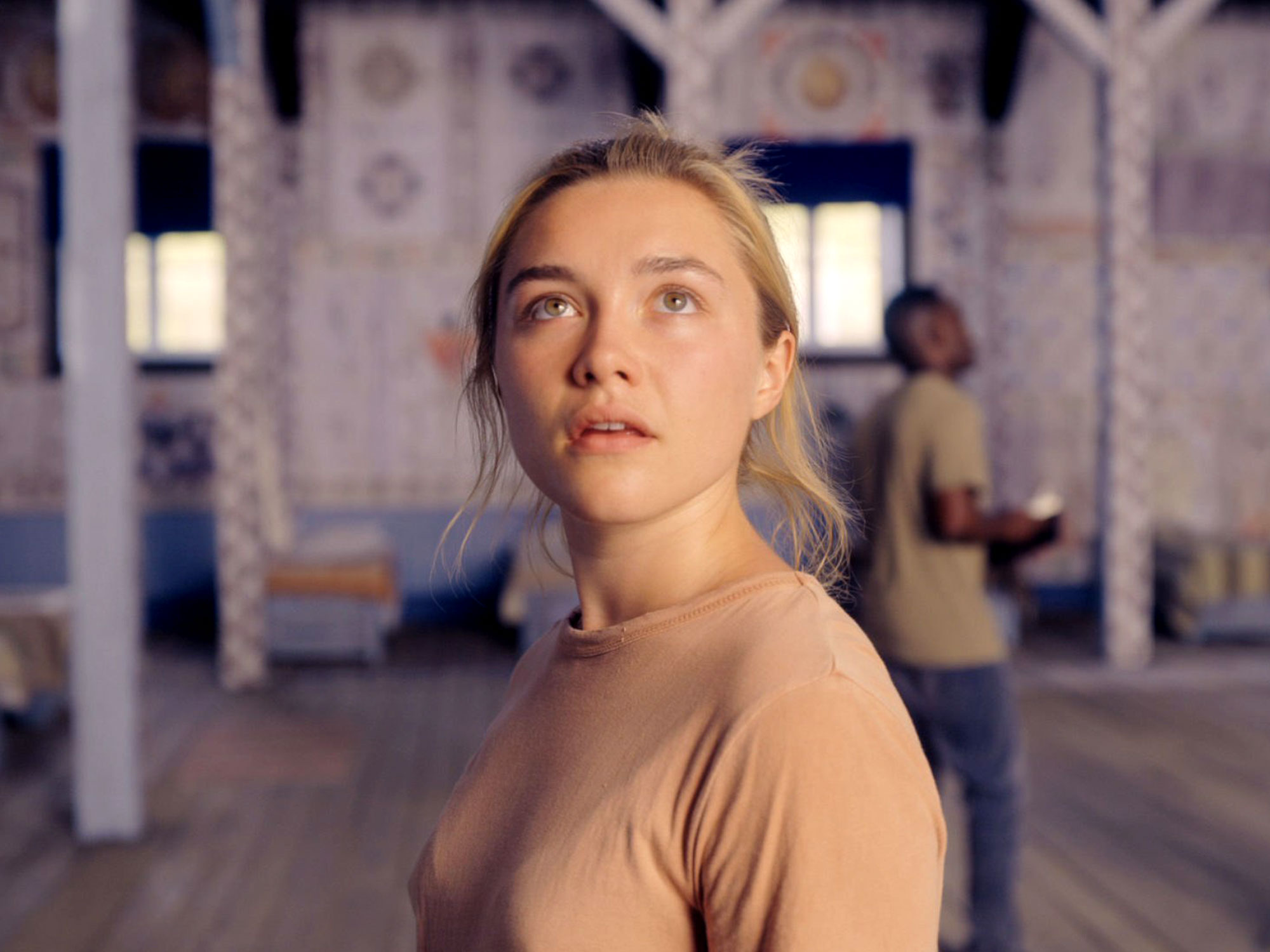 As in Hereditary, the film’s protagonist, Dani (Pugh) is coping with a family tragedy. Her boyfriend Christian (Jack Reynor) is trying to be supportive, but has been debating breaking up with her for some time, encouraged by his pals Mark (Will Poulter), Josh (William Jackson Harper) and Pelle (Vilhelm Blomgren). In an attempt to lift Dani’s mood, Christian invites her on the boys’ trip to Pelle’s hometown in rural Sweden to attend a summer solstice festival. Not long after their arrival, the group begins to realise there is something more sinister at play in the community, unsettled by violent rituals that sit in stark contrast to the apparent serenity of the locals.