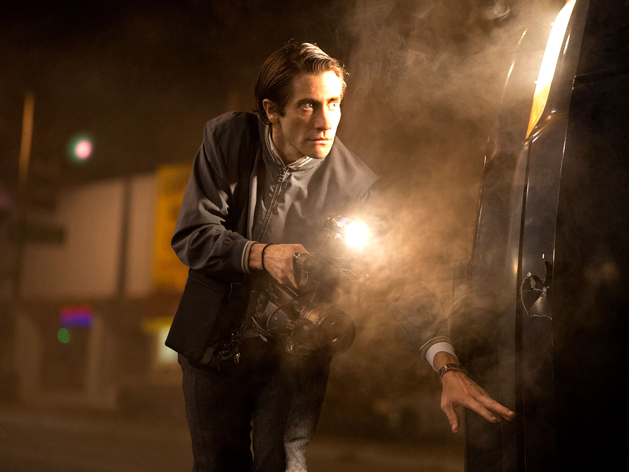 In the City of Angels, a demon is stirring. We meet Lou Bloom (a gaunt, gabby Jake Gyllenhaal) on the wrong side of the tracks, moments before he carries out a violent assault on a security guard with unflinching ferocity. Soon after he pulls over beside a smouldering car on the freeway, his gaze switching from the family being pulled from the wreckage to the TV camera crew that shows up to capture the grisly incident. Spying a career opportunity, Bloom equips himself with a budget camcorder and a police radio scanner; before long he’s hurtling around town like a man possessed without ever arriving on the scene early enough to trouble the competition – namely Bill Paxton’s brash, self-styled “nightcrawler”.