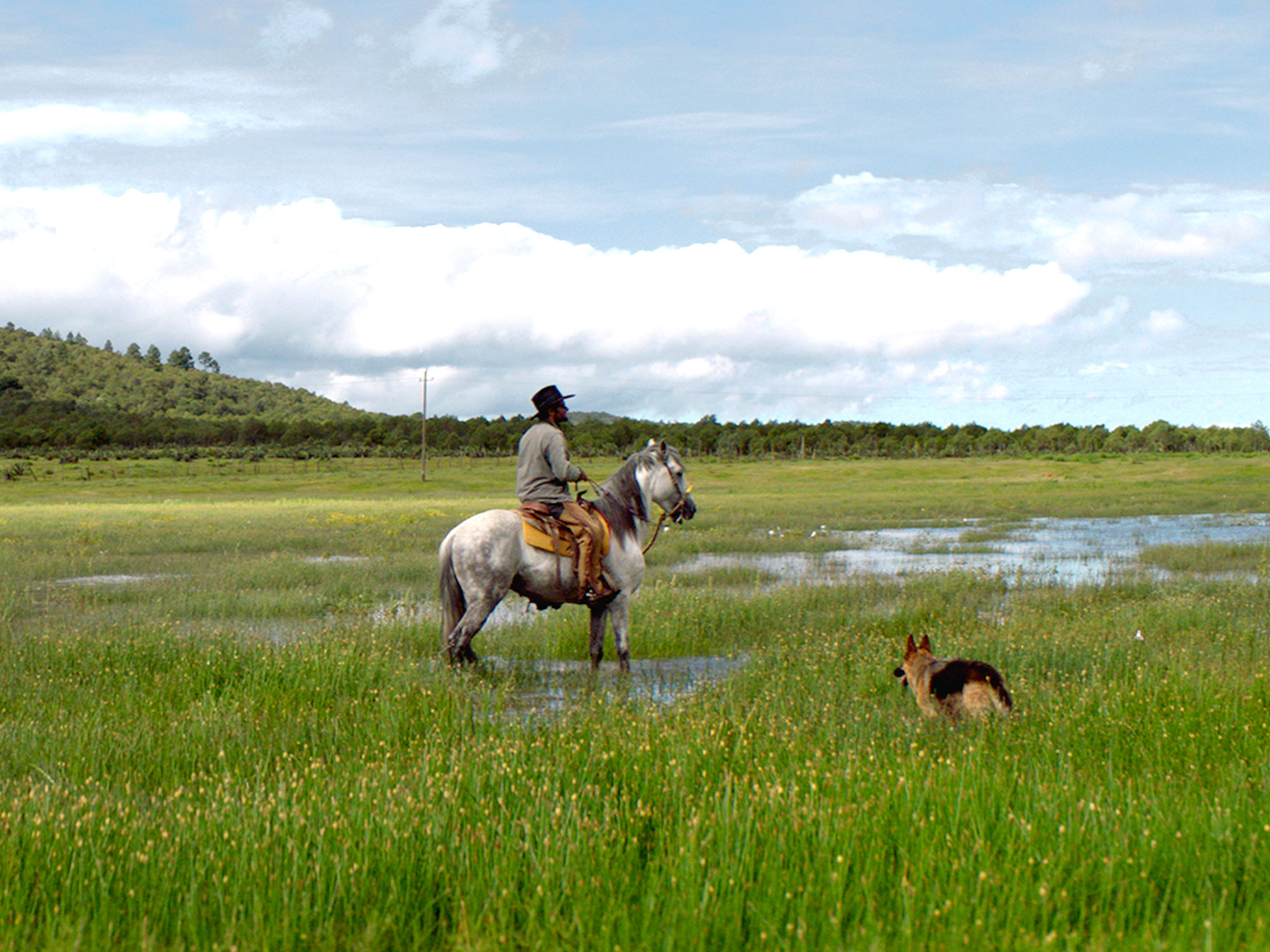 It’s invigorating to watch an artist who is so content to project and embrace weakness, and to use cinema as a fantasy playground to express the most destructive impulses of the human heart. His Juan is a super chill poet warrior, stetson tilted over his brow as he canters around his vast grounds on horseback while his wife, Esther (played by his editor and actual wife, Natalia López), takes care of all the physical labour of overseeing livestock.