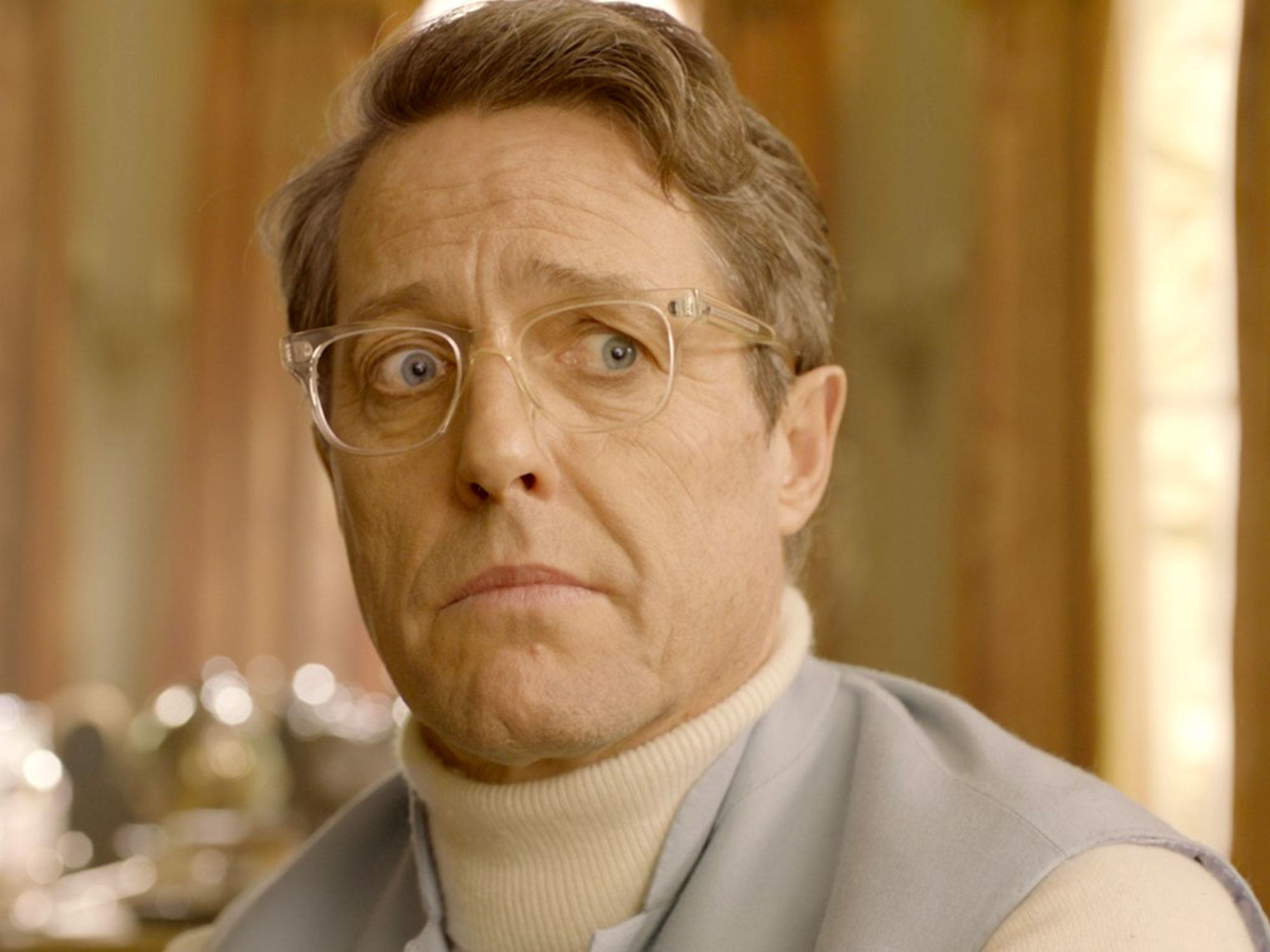 Though no small character is left behind, it’s Grant who deserves top honours. He’s now so far removed from the dithering clot of Four Weddings and a Funeral that he actually comes across as a contemporary Vincent Price. As in the classic Theatre of Blood, where Price’s limelight-sapping thesp decides to slaughter a pack of critics, Grant turns up the ham so high here that it virtually folds in on itself. It’s meta ham. He deliver’s every syllable with a fulsome rasp, and always makes sure to flash those trademark pearly whites as a suffix to every fruity line reading. A climactic dance number in which he shimmies down a staircase wearing pink chiffon flares suggests the team here might have a wonderful MGM musical movie in them.