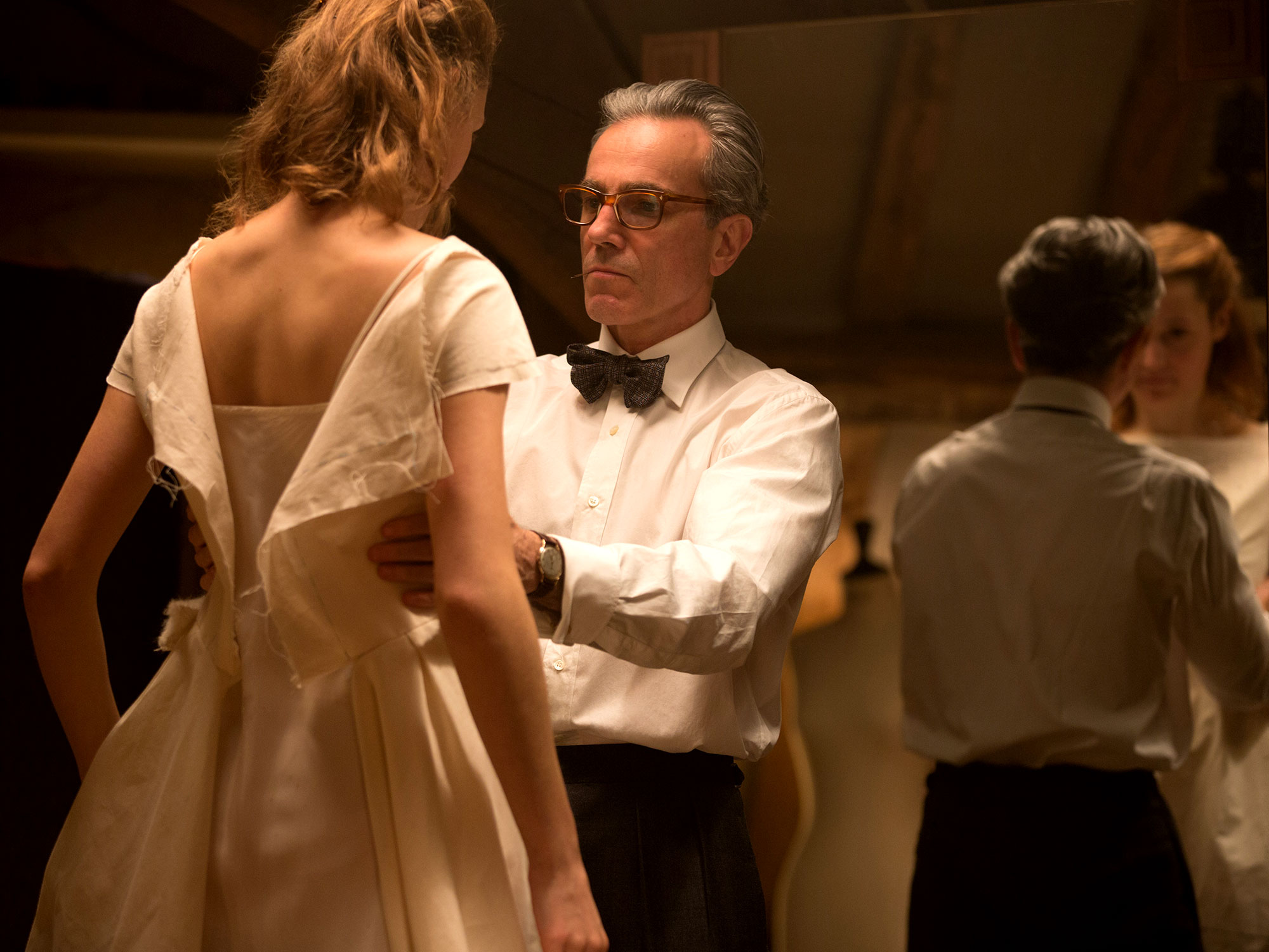 From this moment on, the film is about Reynolds and Alma. The phantom thread of the title could refer to the imperceptible and incomprehensible tie that binds them. Neither seem to know why they have chosen to remain locked in the other’s orbit, particularly as the dark times appear to outweigh the light by an uncomfortable margin. As with The Master, the film plays like an obscure psychoanalytic case study, and Anderson forces you to excavate (like Day-Lewis at the beginning of There Will Be Blood) for meaning.