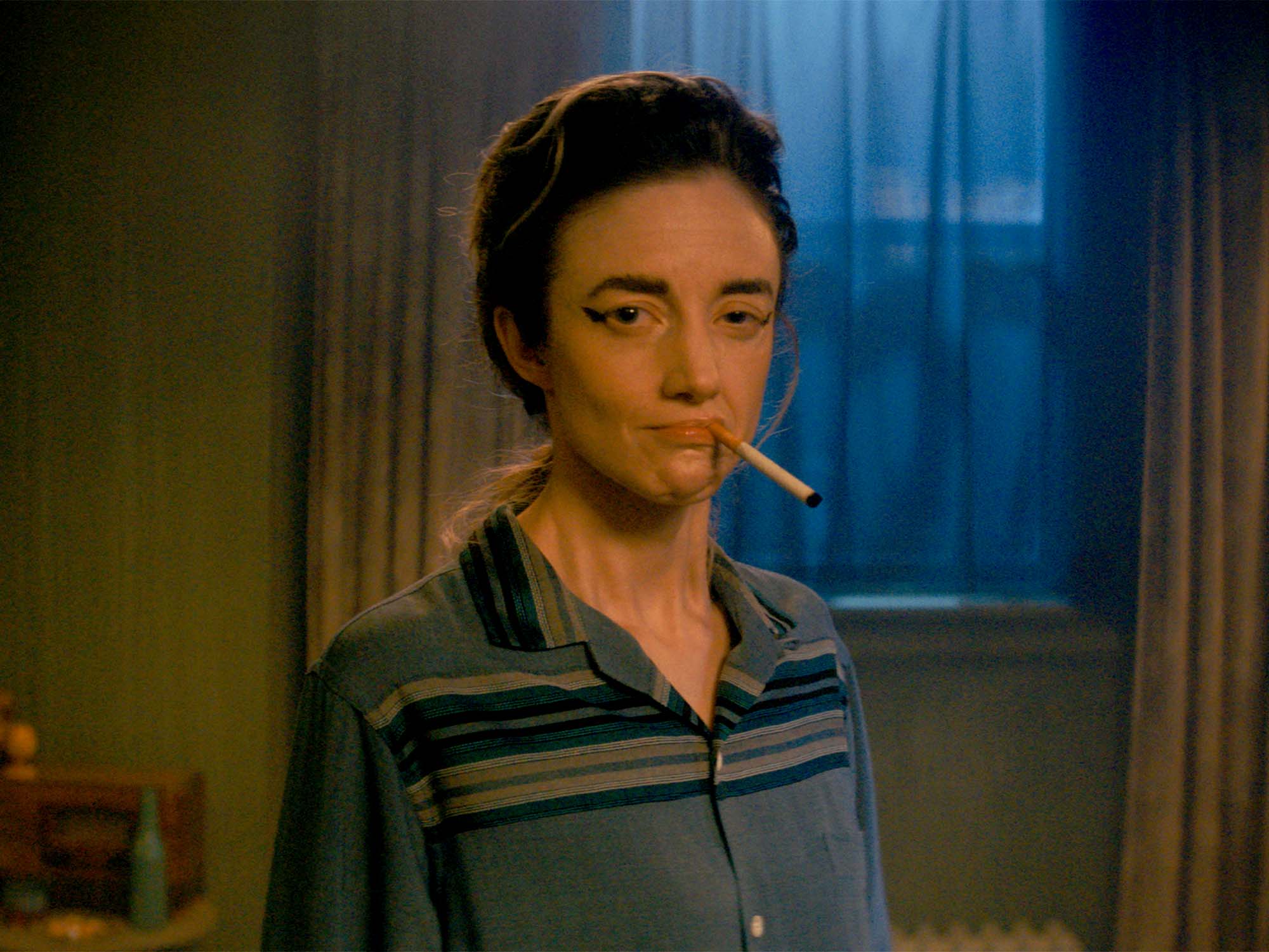 Newlyweds Suze (Andrea Riseborough) and Arthur (Harry Melling) are an ostensibly straight, beatnik couple living in a bizarre, fever dream version of a 1950s Lower East Side. The night that they witness the murder of a man by a queer-coded, leather-clad greaser gang outside their apartment building, Arthur is struck with lust, and Suze, with gender envy. Their confounding queer awakening unfolds in an outlandish greaser tale of love and violence that confronts the unspoken battle between gender and expression in West Side Story by means of inversion.
