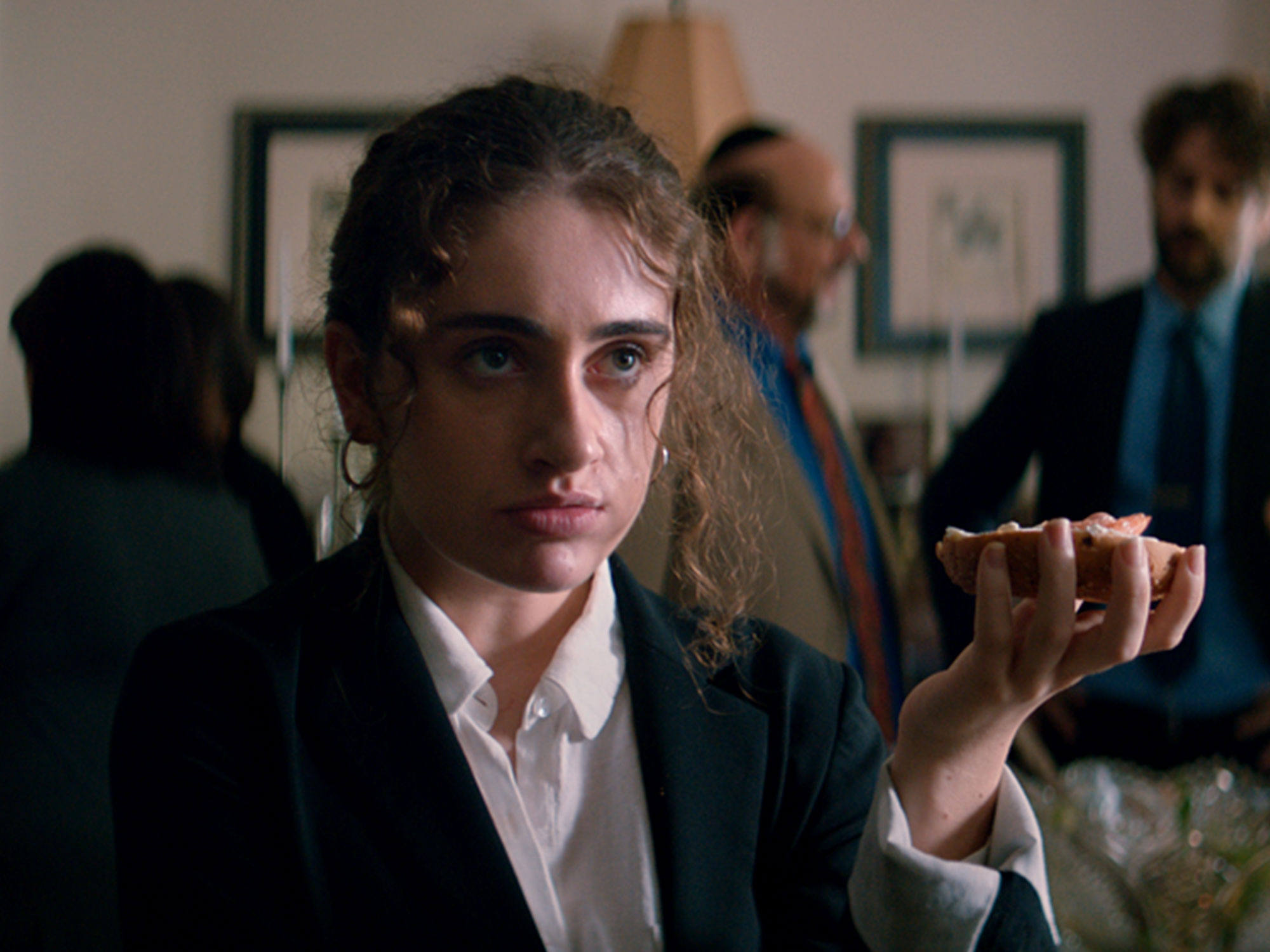 Developed from Seligman’s short film of the same name, Shiva Baby takes place over the course of a single day, following Danielle from her sugar daddy Max’s (Danny Deferrari) apartment to her aunt Sheila’s (Cilda Shaur) house, where she joins her parents at a shiva (the Jewish post-burial mourning tradition) for a distant relative. Danielle is immediately unsettled by the presence of her law school bound ex-girlfriend Maya (Molly Gordon), whose academic excellence only emphasises her own lack of direction.
