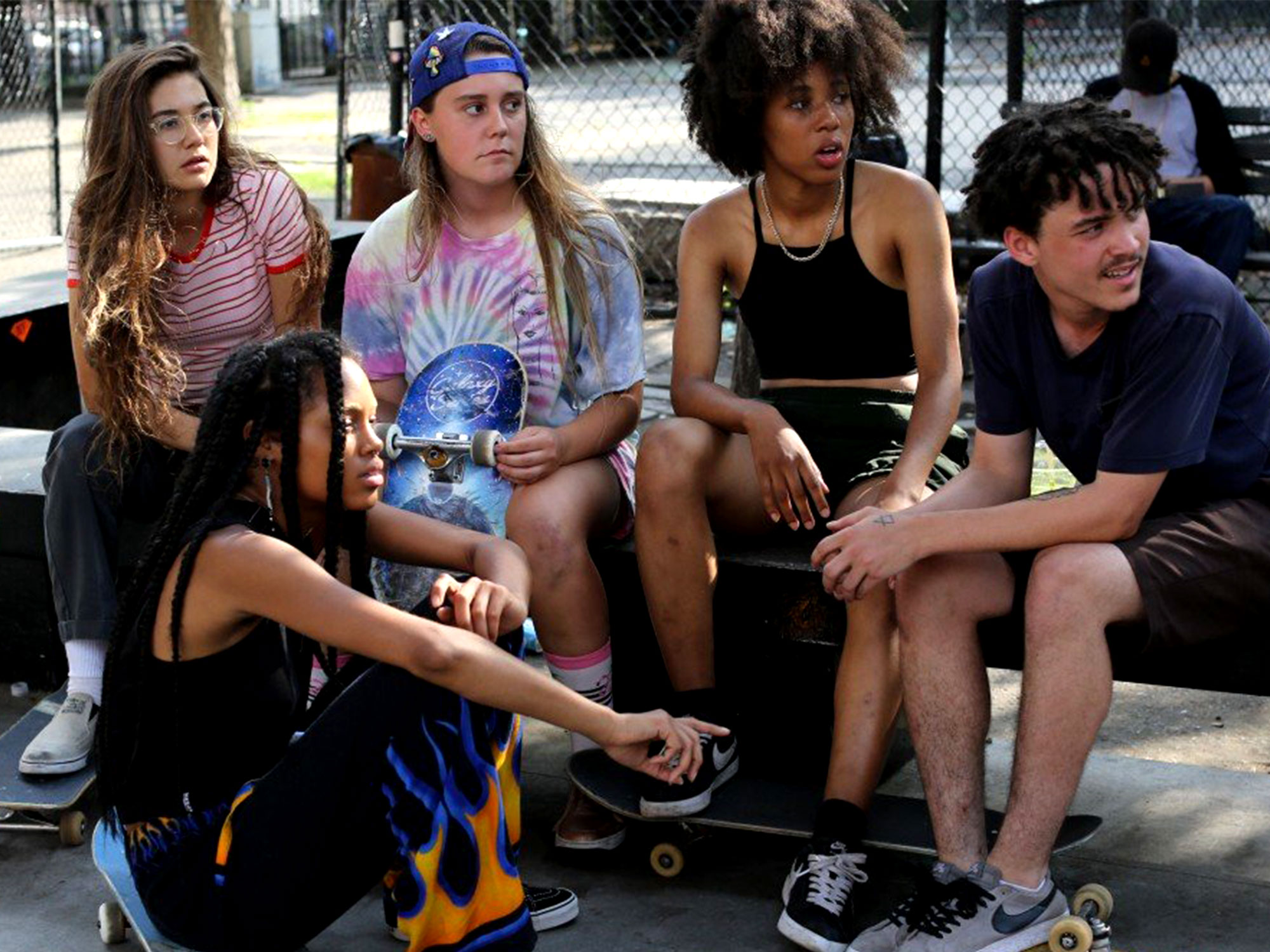 The film is based on Moselle’s 2016 short That One Day, which features much of the same cast. Real members of The Skate Kitchen play thinly disguised versions of themselves: they wear their own clothes (bejewelled with unique New York style); they skate on their home turf; and much of the film recreates their lived experience. The years of chemistry between the crew and their familiarity with skater slang adds authenticity to the film’s dialogue, coming to them as naturally as an ollie.