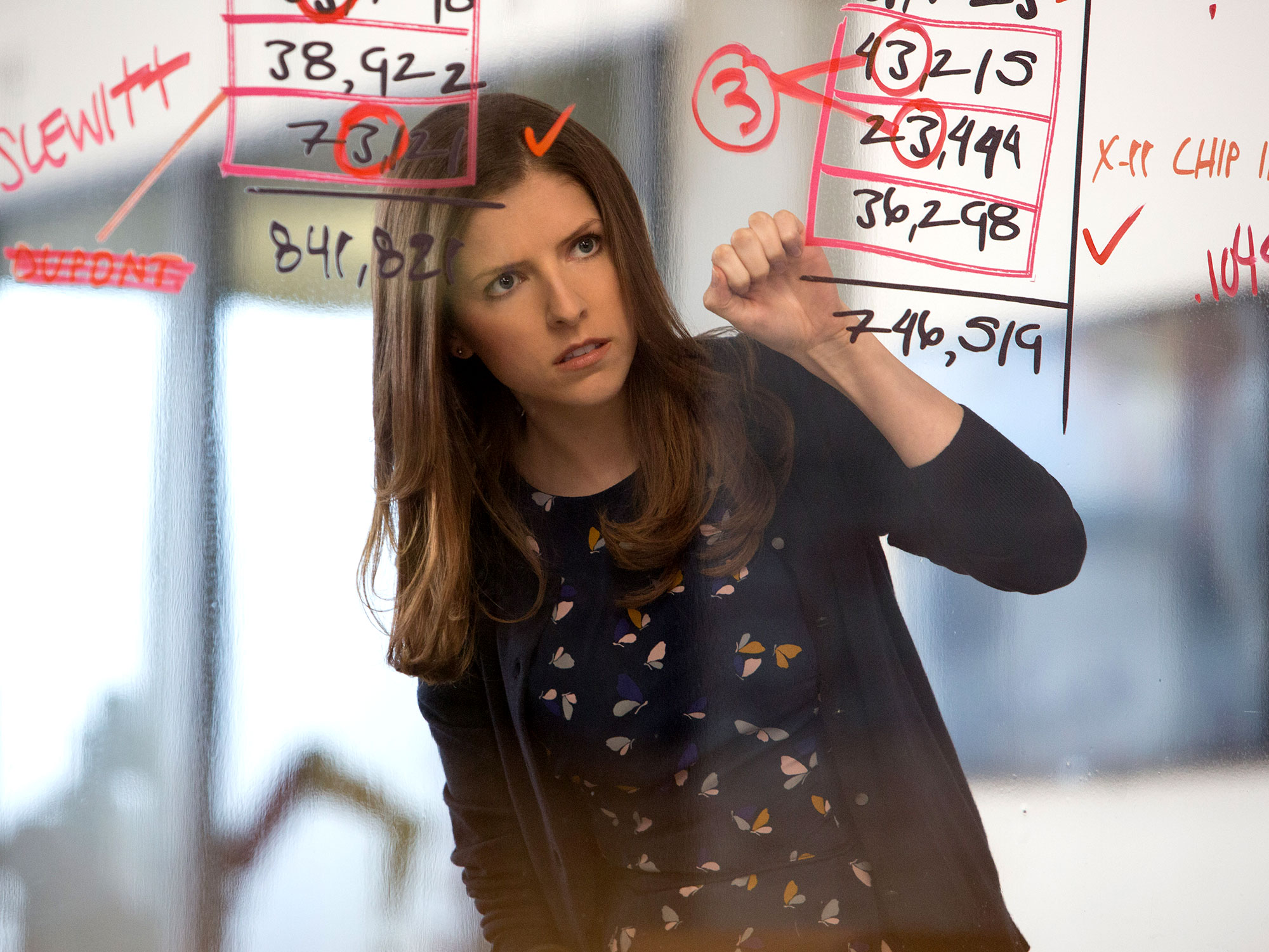 Being a genius, Christian excels at his job, especially so when hired to look into the books of big corporations trying to avoid scandals or to launder money. When Lamar Blackburn (John Lithgow, given very little to do) is alerted by his employee Dana Cummings (Anna Kendrick, convincing as a regular accountant and all-round polite person) that some money has been leaking from his company Living Robotics, he contacts Christian. Overnight, Christian uncooks 15 years worth of books and finds said leak in a rousing montage of him covering the walls of the room with numbers and calculations.