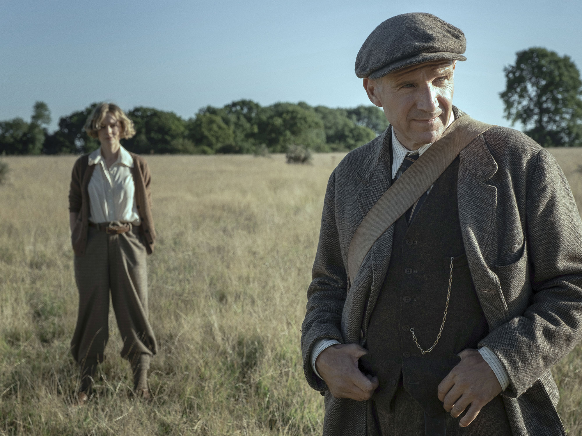 Initially there are hints that this is to become a love story, and that the pair will develop a romantic bond amid the sopping mud and high seriousness of the endeavour. But any notions of such stifled yearning are nixed by about the half-way point when the story introduces a clutch of new characters, which includes Lily James’ bushy-tailed student archeologist and Johnny Flynn’s cool-guy photographer-cum-flying ace, and heads off in some strange and not-altogether satisfying directions.