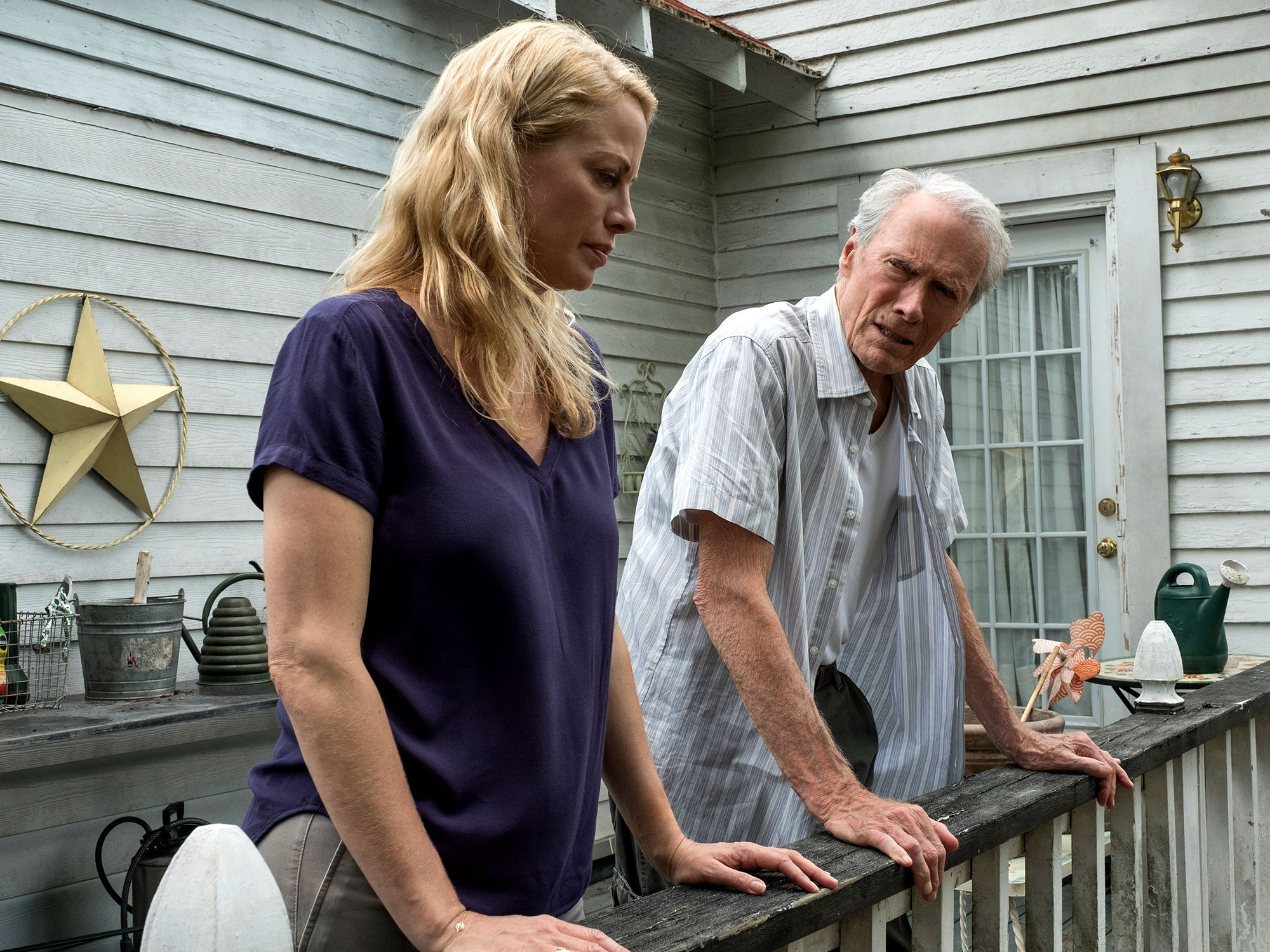 But he’s quickly aged up a decade, into a sketchy outline of orneriness filled in with befuddlement. The “damned internet” has ruined Earl’s business, and he looks shockingly shrunken, with a shuffle in his walk, a tremor in his chicken-bone arms, and a breathy voice rattling out of his flycatching mouth. Stooped and skeletal, he’s barely taller than his granddaughter Ginny (Taissa Farmiga). After a lifetime of living it up on the road and neglecting ex-wife Mary (Dianne Wiest) and daughter Iris (Alison Eastwood), she’s the only family member who still talks to him, and with his house in foreclosure, he allows himself to be recruited by a local cartel affiliate.