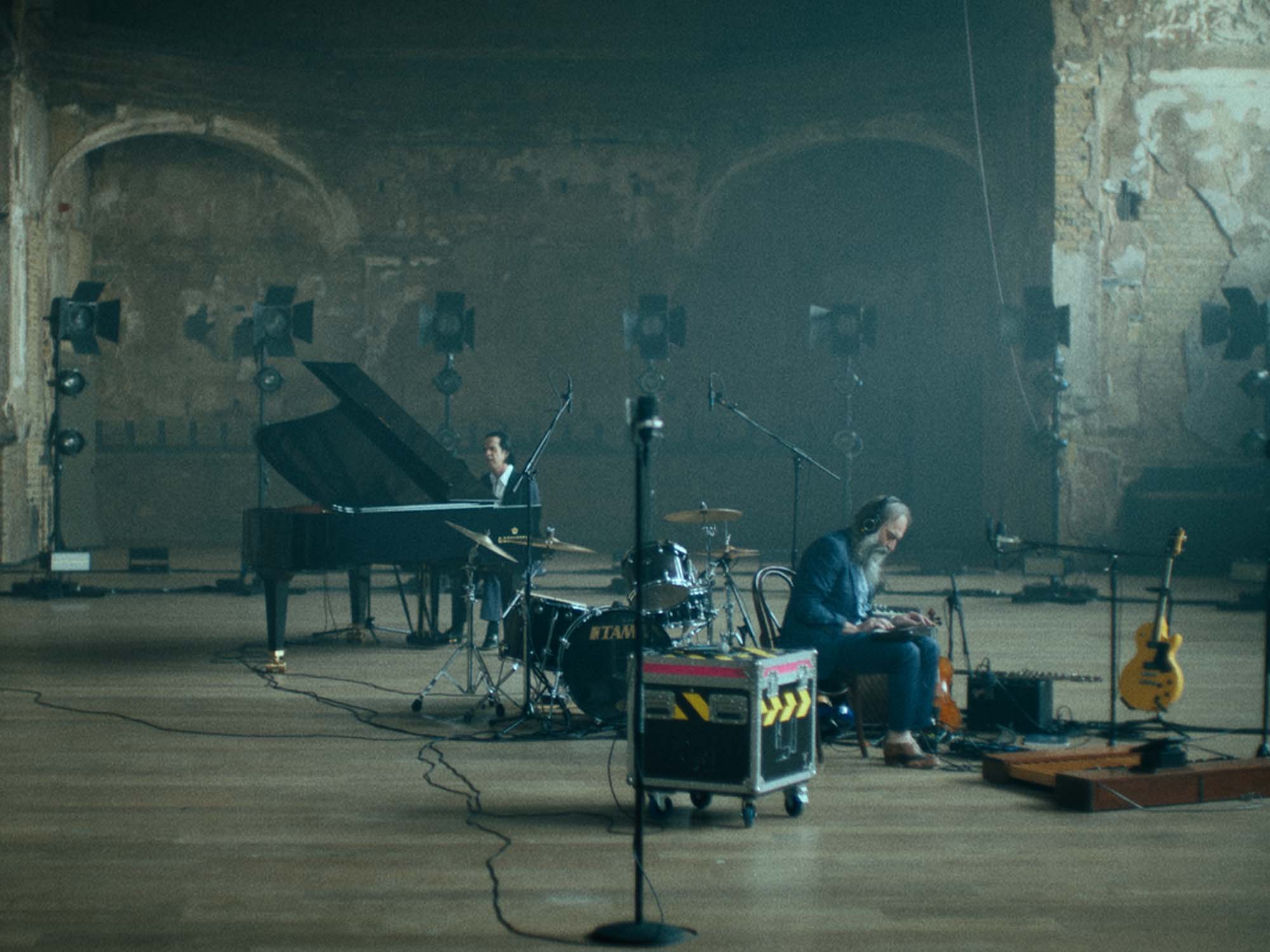 Andrew Dominik’s 2016 3D monochrome documentary delineated a heartbreaking portrait of a grief-stricken Nick Cave as he grappled with the tragic death of his teenage son Arthur. His latest, This Much I Know to be True, unfolds as a concert film shot under covid restrictions, when live music was off the menu. It documents the fruits of collaboration cultivated between Cave and his longtime creative partner and Bad Seeds bandmate, Warren Ellis, as their last two studio albums are brought to life: Ghosteen (The Bad Seeds) and Cave and Ellis’ first solo collaboration outside of their prolific film scores, Carnage.