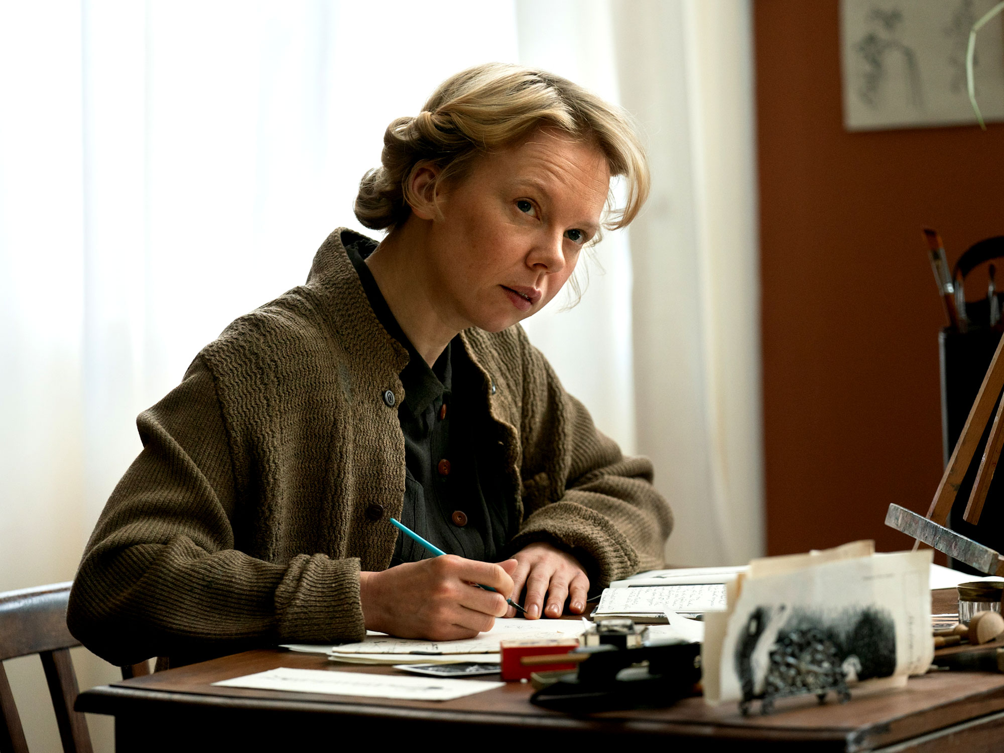 The streets of Helsinki lay in ruins in the aftermath of World War Two. A woman dances on her own, then, a bomb shelter, and she sketches balloon-headed graphite troll creatures on scrap paper. Tove Jansson (Alma Pöysti) is at the heart of her best-known work, the comic series about a village of creatures called Moomintrolls.