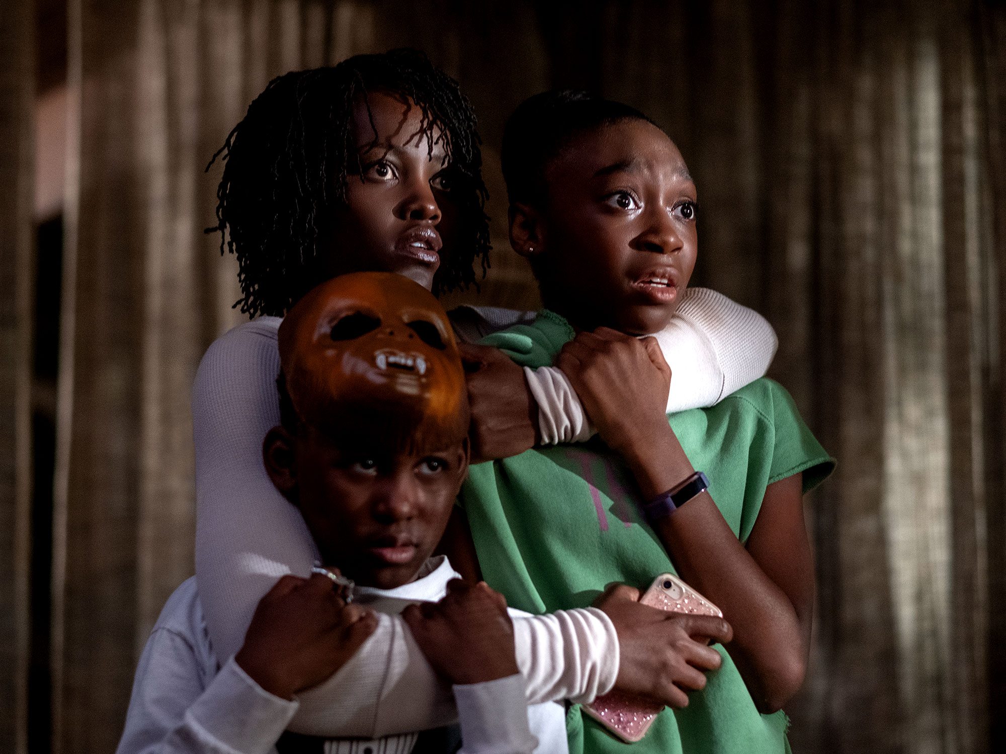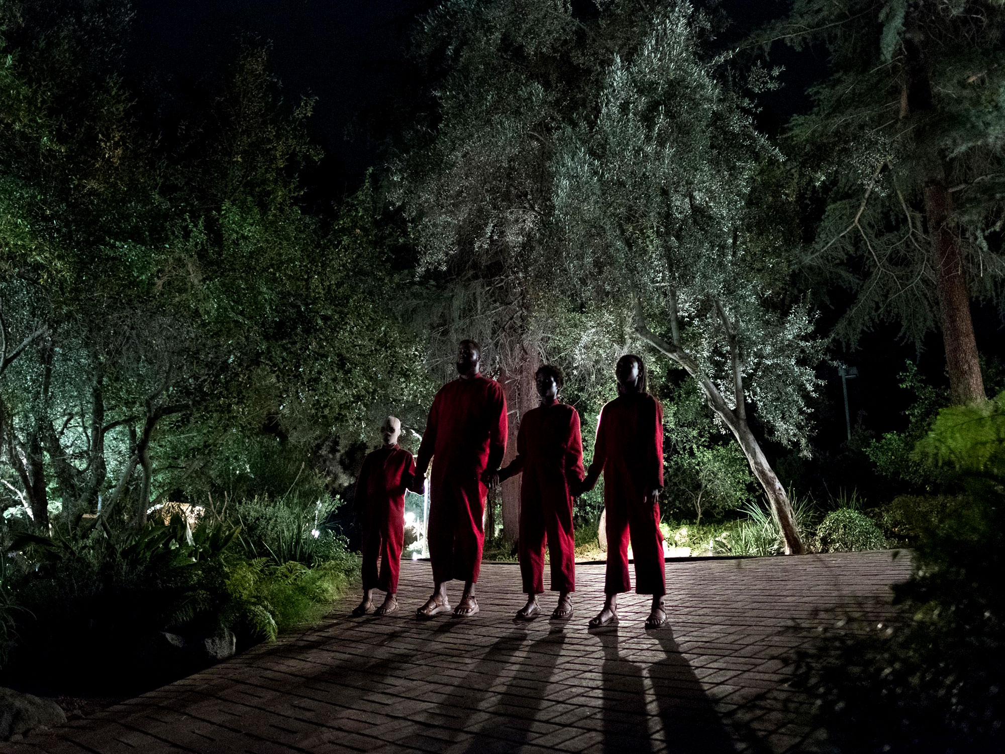 The story opens in Santa Cruz, 1986, as a young girl, Adelaide Wilson, wanders into a hall of mirrors. Instead of an obvious jump scare, Peele keeps the thing that terrifies her into wide-eyed shock off screen, allowing the encounter to hang in our minds for the rest of the film. Cut to 30 years later and a now adult Adelaide (Lupita Nyong’o) is on the road back to Santa Cruz with her husband Gabe (Winston Duke) and their two children, Zora (Shahadi Wright Joseph) and Jason (Evan Alex). After a stretch of build-up and some goofing around (which includes a charming sing-along to Luniz’s ’90s banger I Got 5 On It), a family identical to theirs shows up in their driveway, robed in red boiler suits and wielding gold scissors.
