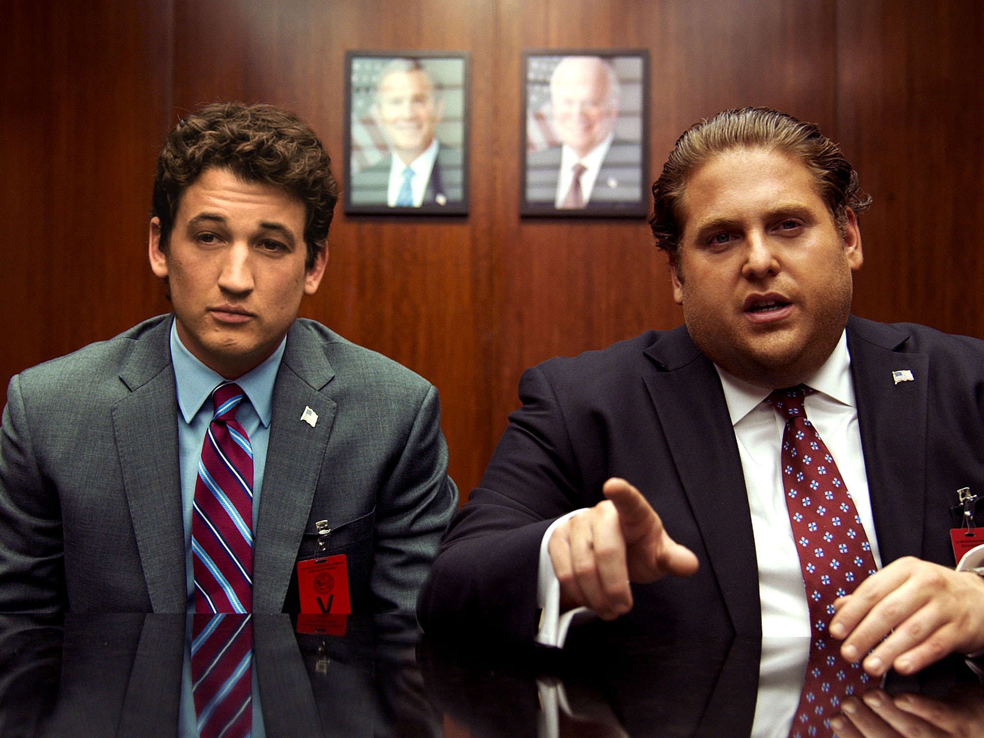 It is sometimes so tired and lacking in basic inspiration, that the biggest laughs are often unintentional. Example: its comically inept use of musical cues. A sequence in which the chest-bumping duo, played by Miles Teller and Jonah Hill, ingest some coke together in an office, and House of Pain’s ‘Jump Around’ drops on to the soundtrack like a 10-tonne dumbbell. It feels like a comedy holding track that was accidentally left in the final cut. Later, when the pair are forced to travel to Jordan to secure a shipment of guns destined for US forces in Baghdad, Iggy Pop’s ‘The Passenger’ plays over a montage of stock skyline vistas. Make your sappy true-life tabloid story, but at the very least take a small amount of time flipping back over the entire history of music in search of a cut that’s more interesting, more vital than the god-damn Passenger – something which doesn’t instantly remind you of many other, better movies.