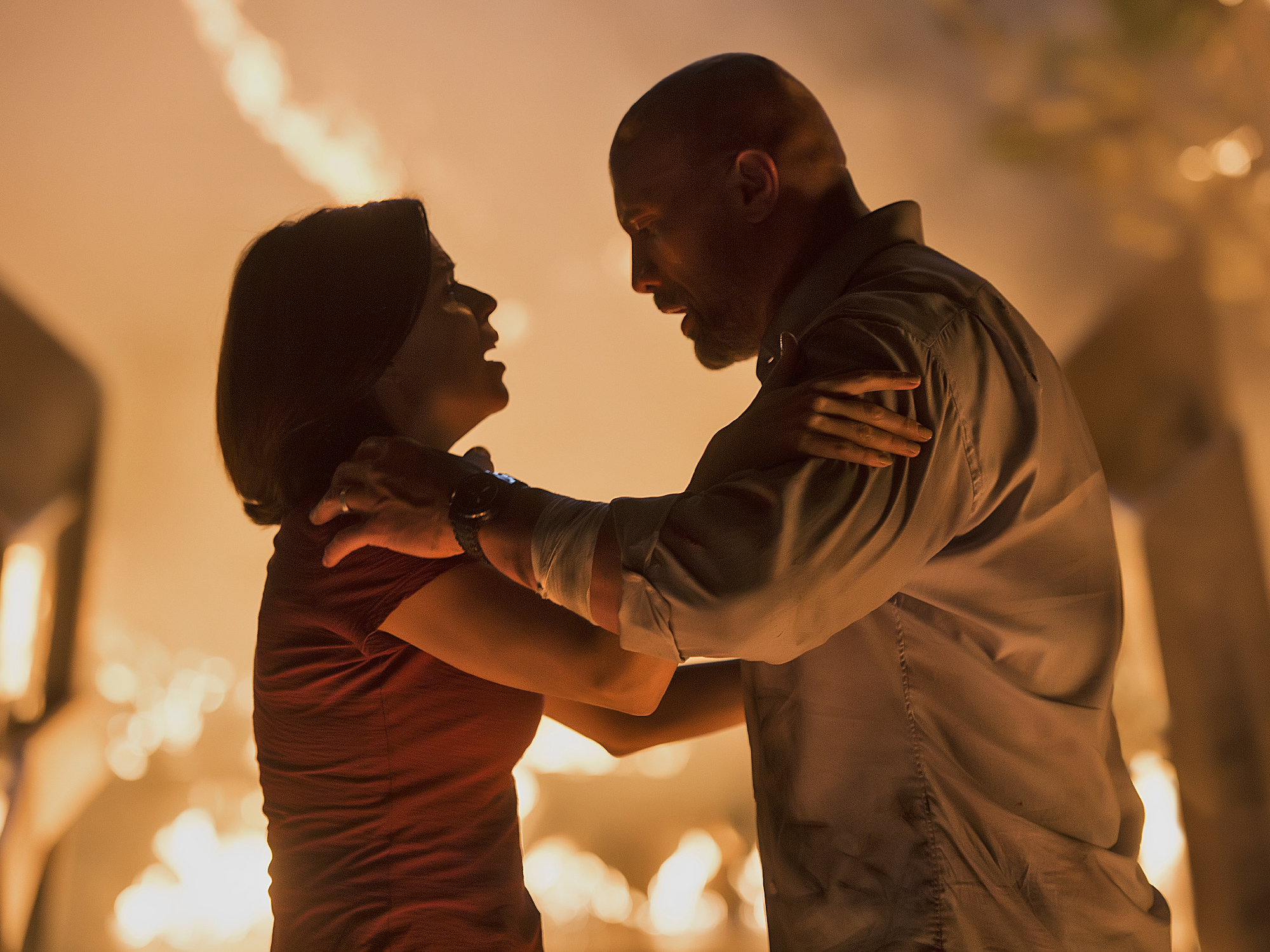 Dwayne Johnson takes on terrorists in a towering inferno in this run-of-the-mill blockbuster.
