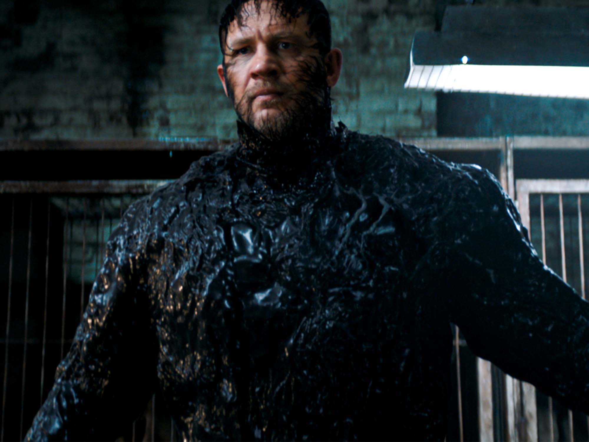 Tom Hardy sneers and sweats his way through this sanitised origin story of Marvel’s Spidey-bothering baddie.