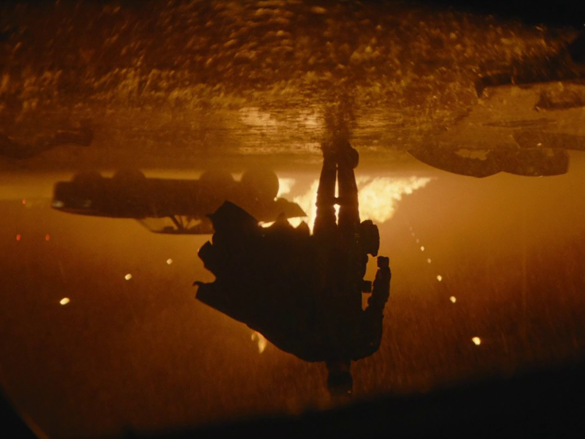 The graphic power of The Batman’s cinematography is perhaps best expressed towards the latter half of its grand finale. After an explosive takedown of the Riddler’s army up in the rafters of Gotham Square Garden, Batman descends the flooded stadium to find himself submerged by water and total darkness. Producing a flare that engulfs our hero in a loud red and guides the citizens of Gotham to safety, the shot has already become a part of the character’s rich iconography. The expressionistic colour – a recurrent motif of the film – imbues Robert Pattinson’s performance with mythic weight that resonates emotionally.