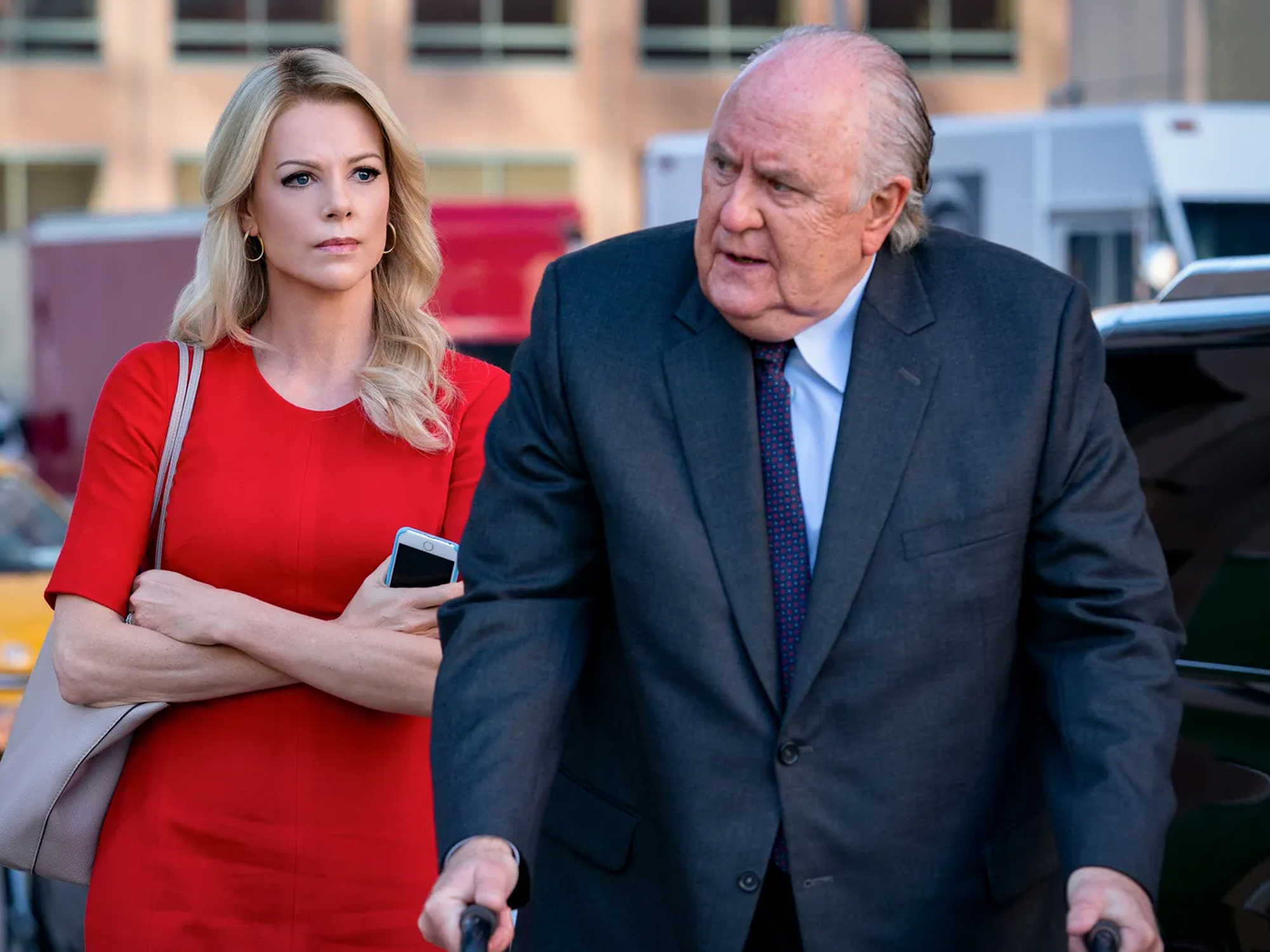 For the Fox News reporters of Bombshell, the use of their voice opens them up to criticism of their politics. The question “Are you a feminist?” is snarkily hurled at the bleached, coiffed, and always painted presenters Megyn Kelly (Charlize Theron) and Gretchen Carlson (Nicole Kidman), which they adamantly deny with no awareness of the irony. As much as the presenters are grilled over their ideological leanings, they are also criticised for not coming forward about workplace sexual misconduct sooner. Megyn is lambasted for her years of silence that inadvertently allowed Ailes’ reign of sexual terror to continue. Whether they speak up or keep quiet, the women of Fox News are damned.