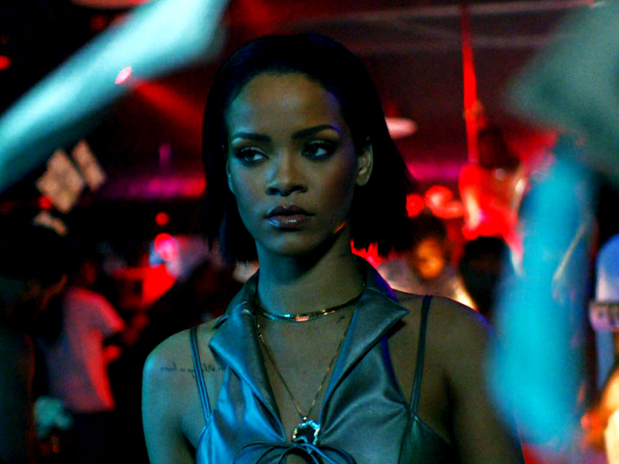 ‘Needed Me’ is another curious entry into Rihanna’s videography, and she is again seen asserting her dominance and womanhood – this time in a billowing see-through outfit with a handgun. But, unlike her contemporary, Beyoncé, Rihanna takes advantage of familiar tropes associated with both dangerous femininity (Barbara Stanwyck in Double Indemnity) and black femininity (Pam Grier in Coffy) by reappropriating them for her own gain. She stands out in the crowd at the strip club, where everyone else is bathed in crimson light, seduced by narcotics and superficial pleasures. We’re left in no doubt that she has total control.